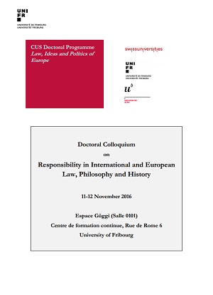 Interventions de Sévane Garibian (discutante de deux travaux) au colloque doctoral intitulé Responsibility in International and European Law, Philosophy and History, organisé dans le cadre du Programme doctoral CUS "Droit, idées et politique de l’Europe" (Samantha Besson, Gilbert Casasus, Thomas Cottier, Michael Hahn et Markus Stepanians), Université de Fribourg, Fribourg, 11-12 novembre 2016.