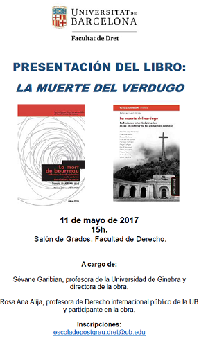 Presentation by Sévane Garibian and Rosa Ana Alija of the edited volume La muerte del verdugo. Reflexiones interdisciplinarias sobre el cadáver de los criminales de masa (Miño y Dávila, Buenos Aires), Barcelona, 11 May 2017.