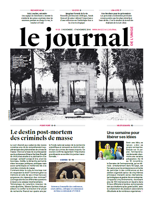 Interview de Sévane Garibian sur son ouvrage La mort du bourreau. Réflexions interdisciplinaires sur le cadavre des criminels de masse, et présentation du projet "Right to Truth, Truth(s) through Rights" dans Le Journal de l’UNIGE n° 123 du 3 au 17 novembre 2016, pp. 1 et 8-9.