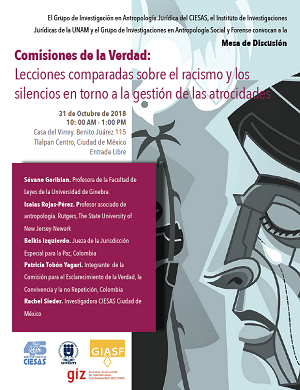 Participation of Sévane Garibian in the round table Comisiones de la Verdad: Lecciones comparadas sobre el racismo y los silencios en torno a la gestión de las atrocidades, co-organised by the Grupo de Investigación en Antropología Jurídica del CIESAS, the Instituto de Investigaciones Jurídicas de la UNAM and the Grupo de Investigaciones en Antropología Social y Forense and held in México on 31 October 2018.