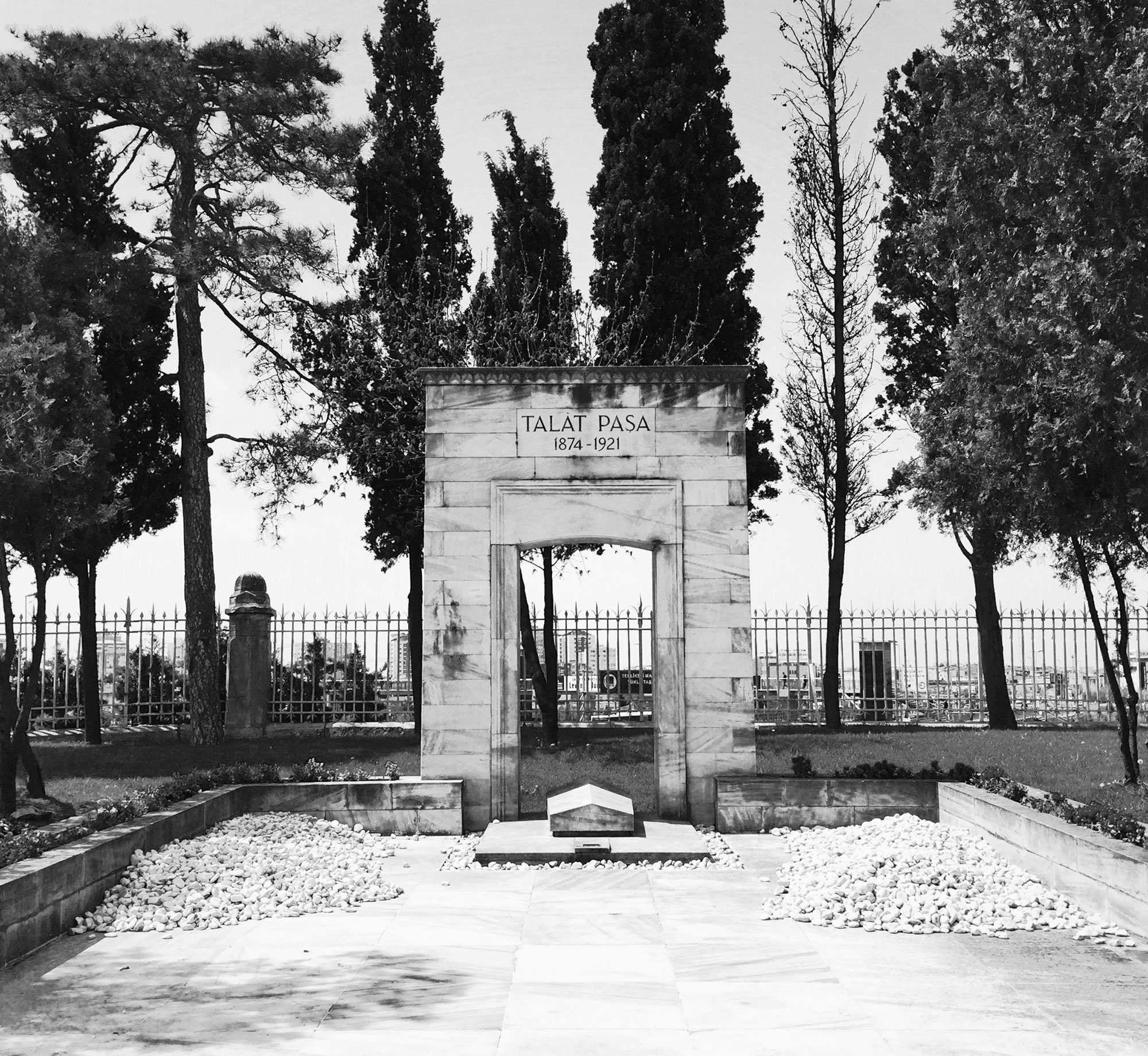 The tomb of Talaat Pasha, one of the main perpetrators of the Armenian Genocide, in the Monument of Liberty (Abide-i-Hürriyet). After fleeing the Ottoman Empire, he was sentenced to death by a Turkish Court in 1919, and then assassinated in Berlin in 1921 by Sogomon Tehlirian, a survivor of the genocide. Adolf Hitler gave his remains back to Turkey in 1943.
